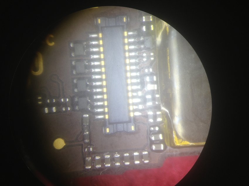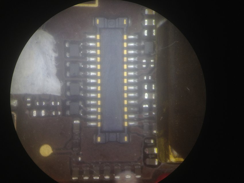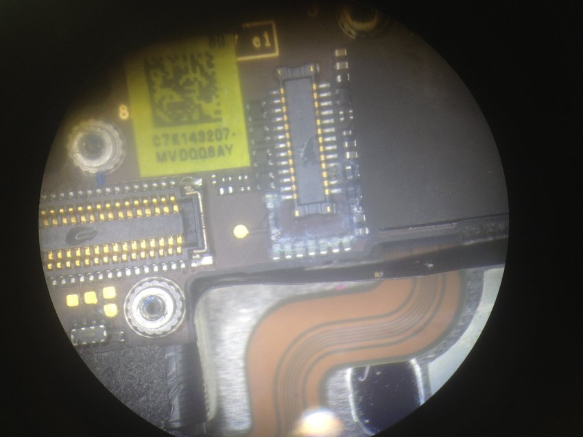 Before---initial view under microscope. Frank corrosion/oxidation at LCD connector.