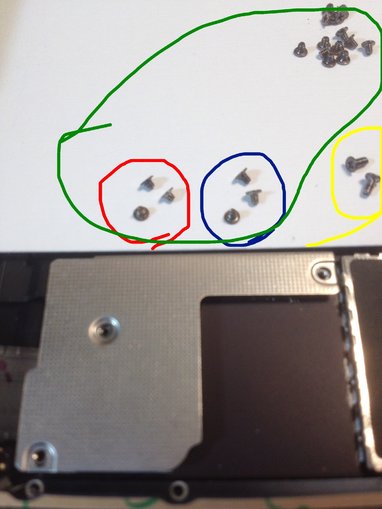 In practice, many folks that haven't done a ton of mini's will go with A---it is clear that the yellow group screws are a little longer and go in the main LCD shield, but it doesn't look like there is a difference between the blue and red group.