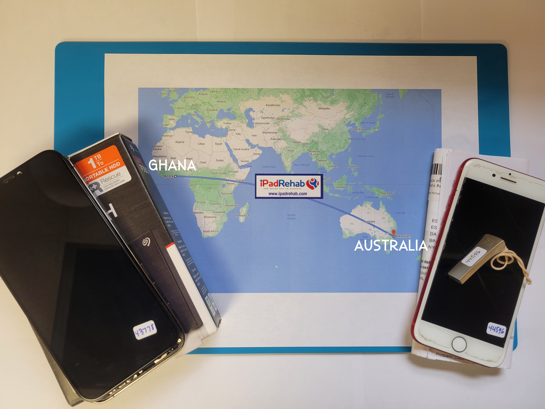 One is going home to Australia. It was an iPhone that had the dreaded “hang on Apple logo” presentation. We were able to solve a hardware problem and recover all of the photos. The second came to us from Ghana, West Africa. It is an iPhone 12 Pro that had suffered a short circuit deep inside the middle layer of the board. All data is safely recovered.