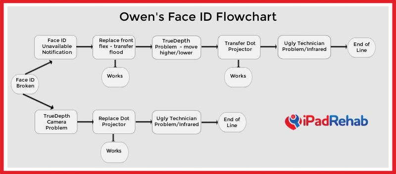 Our in-house Face ID expert, Owen Rodgers, has put together a flowchart for you to use to help you diagnose iPhone Face ID problems. We hope you like it!