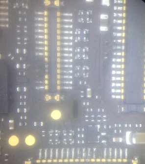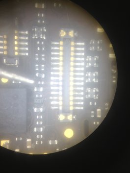 Practically unscathed. This connector is restored and the backlight is back on. Digitizer and front camera connector also look great. See needle pointing to a tiny connector that has been reflowed as well.