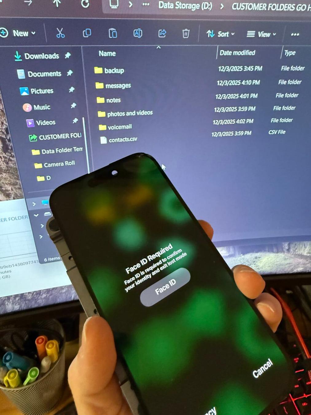 We were able to get a full backup of their data before Apple's lost mode command locked the device.